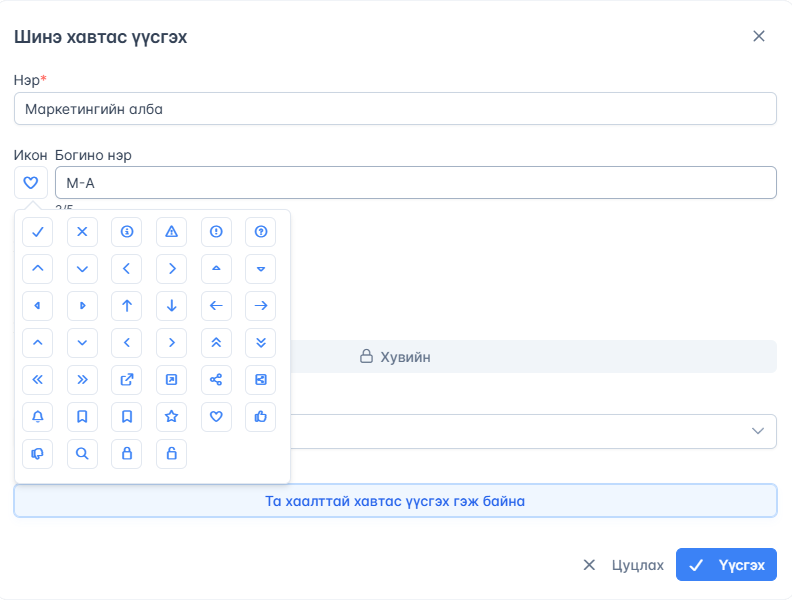 Хавтсанд тохирсон icon-оо сонгох боломжтой📍 Ажлын урсгал (Workflow)