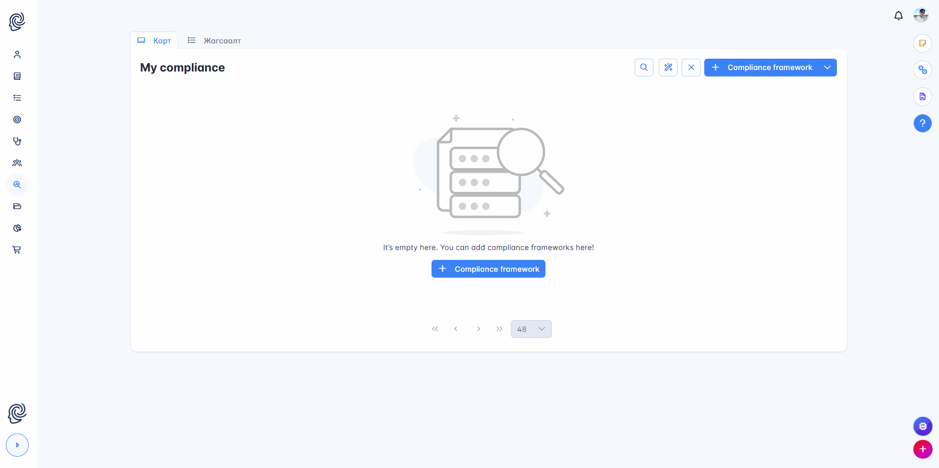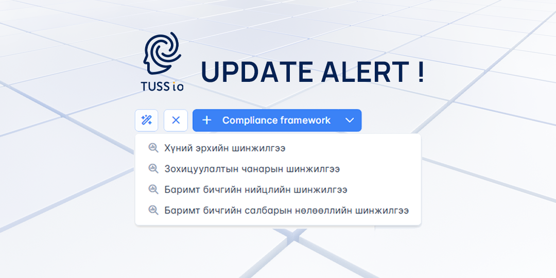 - Нарийвчилсан тохиргоо: Compliance-ийн баримт бичиг үүсгэхдээ тухайн байгууллагын салбар чиглэл, бүтцийн нэгж, өөрийн үйл ажиллагааны онцлогт тохирсон мэдээллийг өгснөөр систем автоматаар тухайн байгууллагад зориулсан Framework-ийг боловсруулдаг болсон.